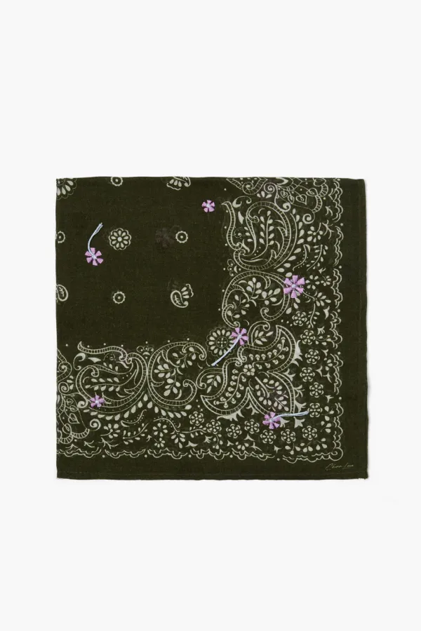 Made From 100% Viscose This Bandana Features Embroidered Flowers With A Loose Thread Detail And Paisley Print. Light And Breathable, It’S Perfect Tied Around Your Neck Or As A Head Scarf.