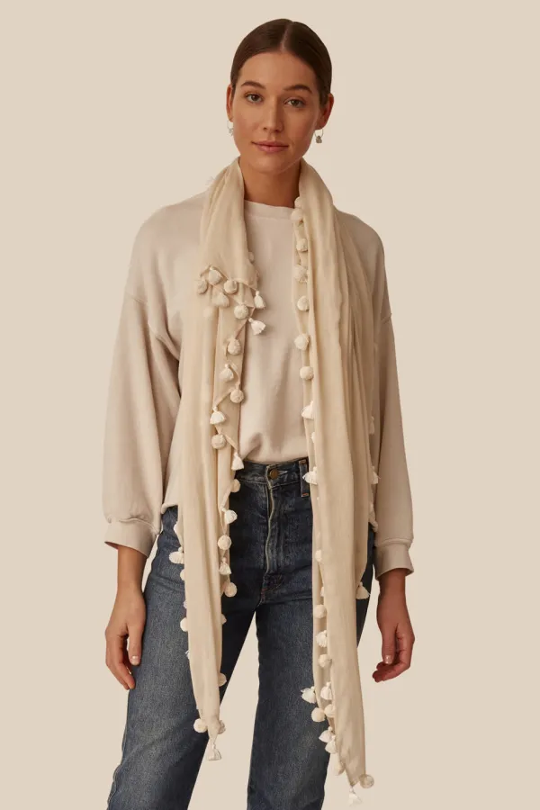 Playful Fringe And Ball Tassels Border This 100% Cotton Ivory Sarong. This Warm Weather Staple Is Ideal For A Day At The Beach.