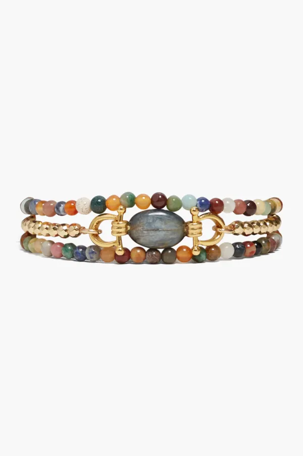 Creating A Layered Look Couldn’T Be Easier With This Fresh Take On Our Naked Wrap Silhouette. A Shimmering Kyanite Pendant Is Framed By Hardware With Rows Of Assorted Gemstones And Gold Plated Hematine. Style Solo Or With More Gold Bracelets To Maximize Your Shine.
