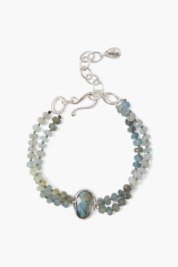 Bold And Elegant, This Double Stranded Bracelet Features Vibrant Moss Aquamarine Beads And A Bezel Wrapped Labradorite Pendant. A Statement Silhouette On Its Own Or Layered With More Silver Bracelets.