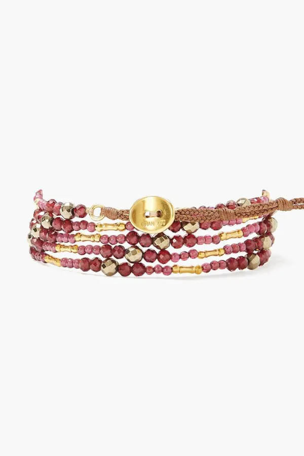 A Bevy Of Sleek Semi-Precious Stones Give New Texture And Dimension To Our Iconic Naked Wrap Bracelet. This Five-Layer Wrap Features Gold Beads, Red Garnet And Titanium Pyrite. Fastens With An 18K Gold Plated Sterling Silver Signature Oval Button.