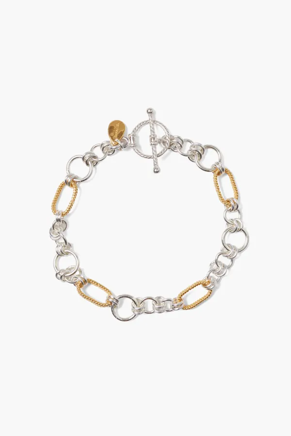 Perfect For Everyday, This Gold And Silver Mixed Chain Bracelet Features Textured Links And A Toggle Closure.