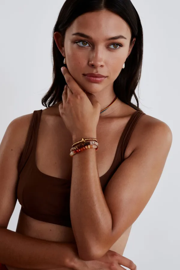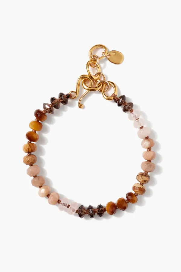 Stunning Gemstone Bracelet Featuring Smoky Quartz, Tiger’S Eye, Picture Jasper, Sunstone, And Rose Quartz With An 18K Gold Plated Sterling Silver Hook Clasp. Pair With Gold Bracelets To Enhance The Look.