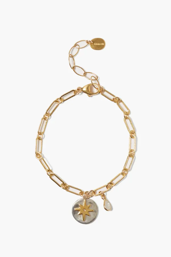 - Beacon Charm Bracelet Gold Mix: 18K Gold Plated Sterling Silver, Sterling Silver, Moonstone. 6 1/2 – 7 3/4″ Adjustable.