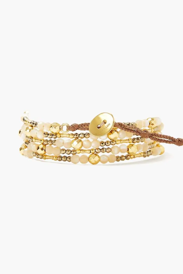 A Bevy Of Sleek Semi-Precious Stones Give New Texture And Dimension To Our Iconic Naked Wrap Bracelet. This Five-Layer Wrap Features Gold Beads, Titanium Pyrite, Mother Of Pearl And Gold Plated Hematine. Fastens With An 18K Gold Plated Sterling Silver Signature Oval Button.