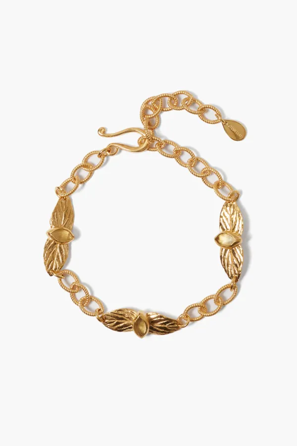Beauty Blooms From This Classic Gold Bracelet Featuring Gold Leaves Framing Shimmering Citrine Marquise Stones. A Modern Essential To Add To Your Collection.