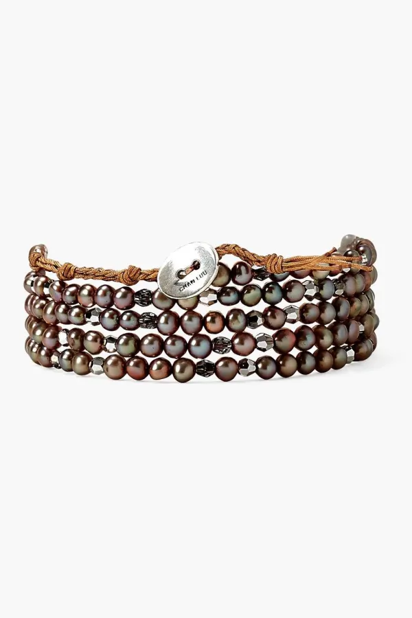 Our Iconic Naked Wrap Bracelet Is Given The Pearl Treatment. Featuring Five Layers Of Luminous Taupe Freshwater Pearls With Pops Of Sparkling Swarovski Crystal. Fastens With A Sterling Silver Signature Oval Button.