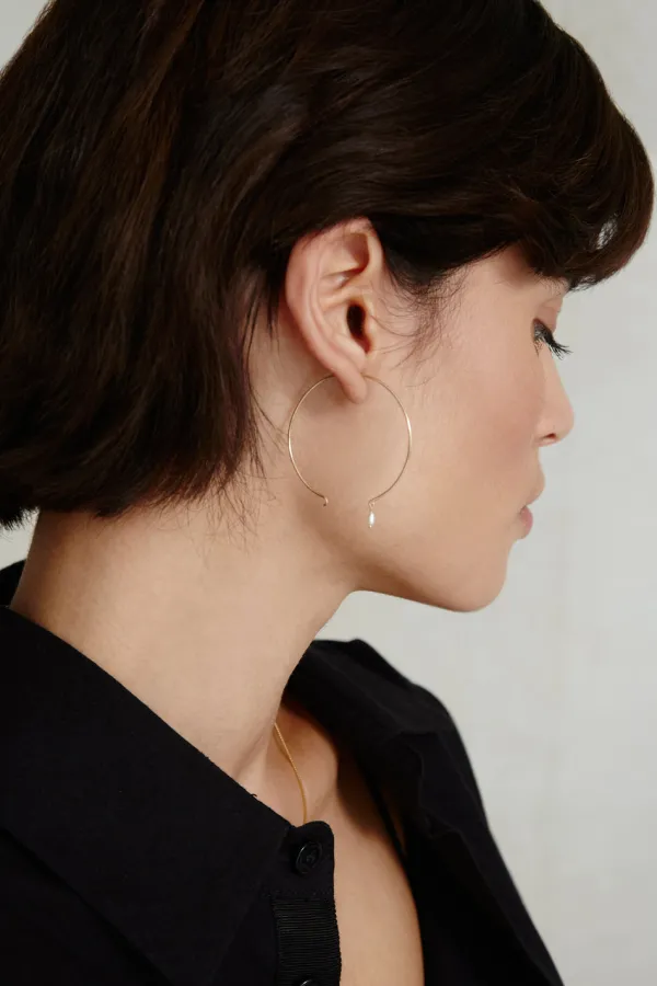 Simplicity Is Key In These Delicate 14K Yellow Gold Open Hoop Earrings Featuring A Petite Pearl Drop. Style Solo For A Subtle Shine Or Pair With More Gold Hoops To Add Layers To Your Look.
