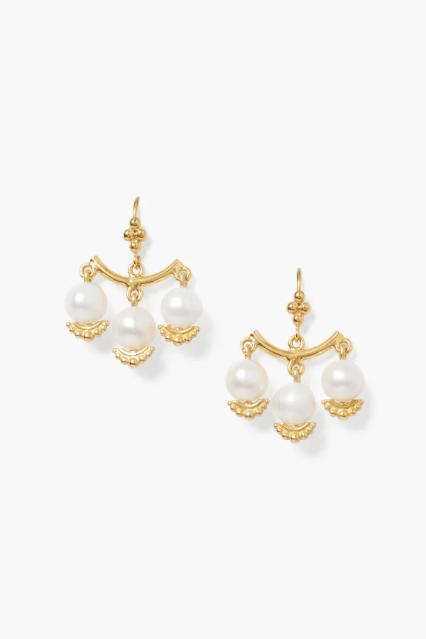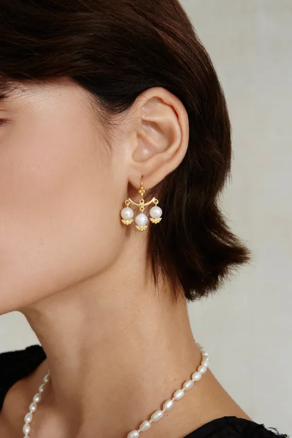 These Gold Chandelier Earrings Featuring A Trio Of White Pearl Add An Opulent Touch To Any Look.