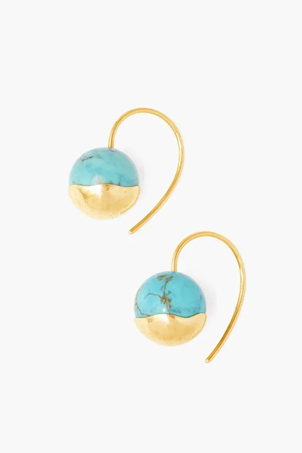 Unexpected Balance Is Found In The Contrast Of The Dramatic Gold-Dipped Turquoise Sphere And Dainty Gold Earwires.