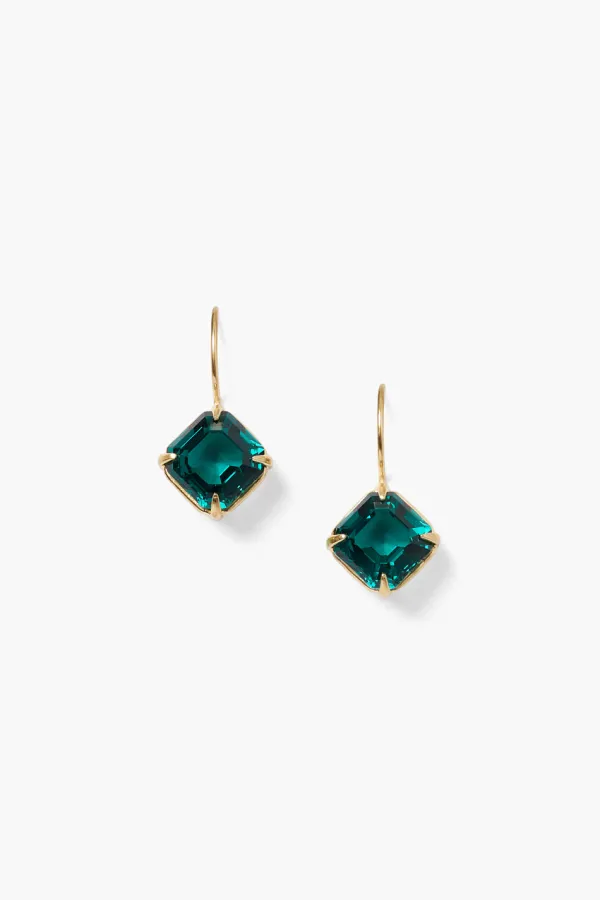 Simple Drop Earrings Featuring Vibrant Emerald Crystals Set In 18K Gold Plated Sterling Silver. A Minimal Silhouette Makes It Easy To Dress Up Or Down.