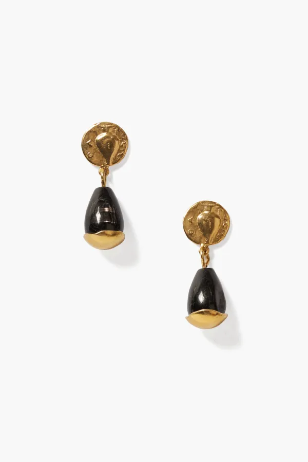Inspired By Ancient Adornments, These Petite Drop Earrings Feature A Hypersthene Teardrop Capped In Gold And A Coin Post With A Stamped Vase Design.