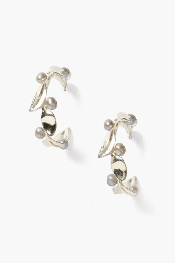 A Whimsical Take On The Classic Hoop Earring. Sterling Silver Leaves And Glowing Freshwater Pearls Create An Elegant Hoop Silhouette. Perfect On Its Own Or Paired With Smaller Hoops Or Studs.