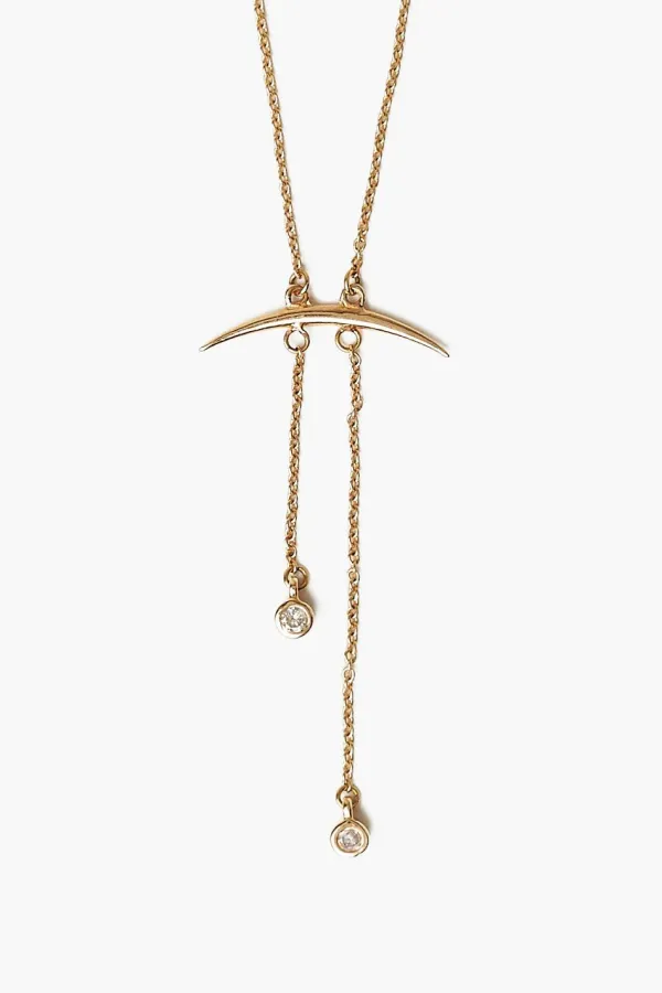 Drops Of White Diamond Suspend From A 14K Gold Horn Pendant In This Dazzling New Take On Our Iconic Horn Necklace. Fastens With An Adjustable Ring Clasp.