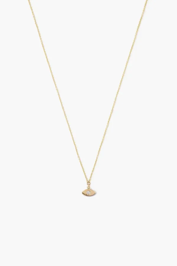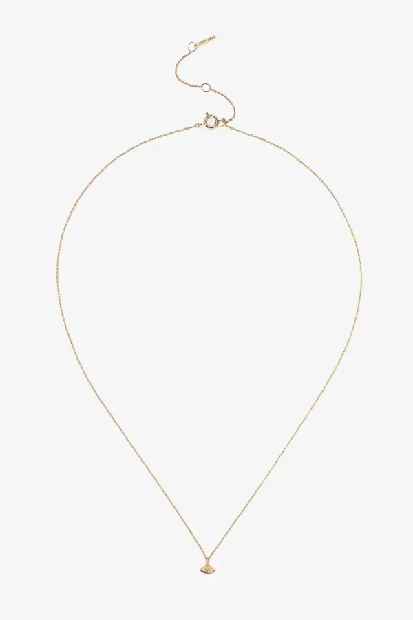 Playful Yet Elegant, This 14K Gold Necklace Features A Dainty Evil Eye Charm With White Diamond Inlay. The Perfect Layering Piece. Fastens With An Adjustable Ring Clasp Closure.