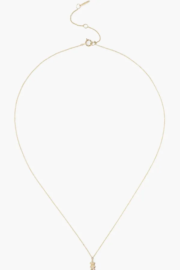 Playful Yet Elegant, This 14K Gold Necklace Features A Dainty Teddy Bear Charm With White Diamond Inlay. The Perfect Layering Piece. Fastens With An Adjustable Ring Clasp Closure.