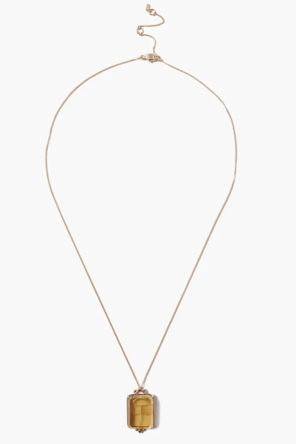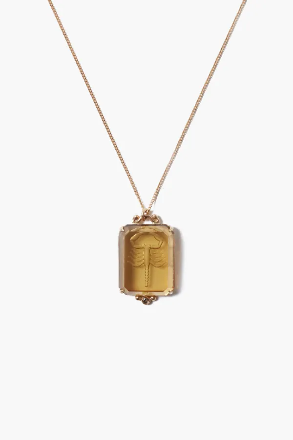 Wear Your Star Sign With This Elegant Whiskey Quartz Pendant Featuring An Engraved Scorpio Intaglio And .03Ct Diamond Inlay On A Solid 14K Gold Chain.