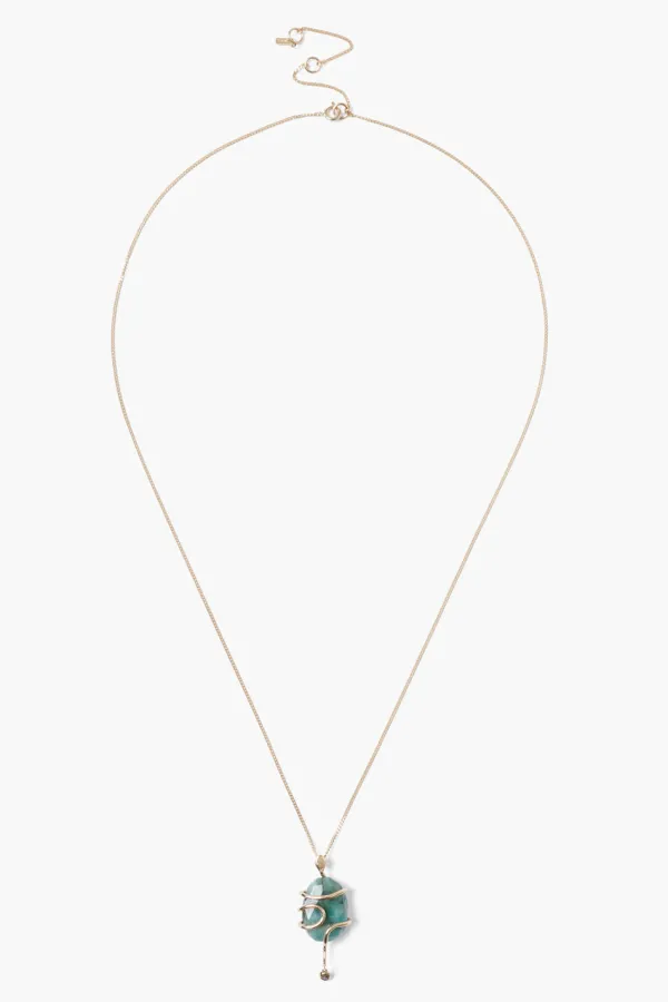Inspired By The Flowing Movements Of A Snake, This Pendant Necklace Features 14K Gold Coiled Around A Sparkling Faceted Emerald With A Diamond Drop.