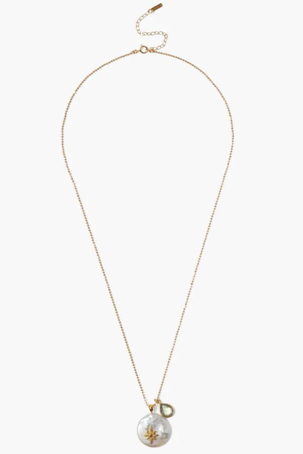 Evoking The Magic Of A Starry Night Sky, This 18K Gold Plated Sterling Necklace Features A White Coin Pearl With A Starburst Motif And Labradorite Teardrop On A Ball Chain. Pair With Gold Necklaces To Perfect The Layered Look.