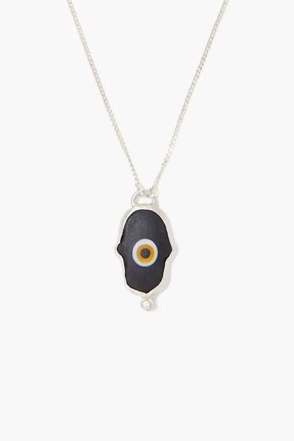 The Hamsa Hand Has Long Been Believed To Bring Happiness And Good Luck To The Wearer. This Necklace Features A Delicate Diamond Suspended From A Wrapped Black Clay Hamsa Hand On A Sterling Silver Chain. Fastens With A Ring Clasp Closure.