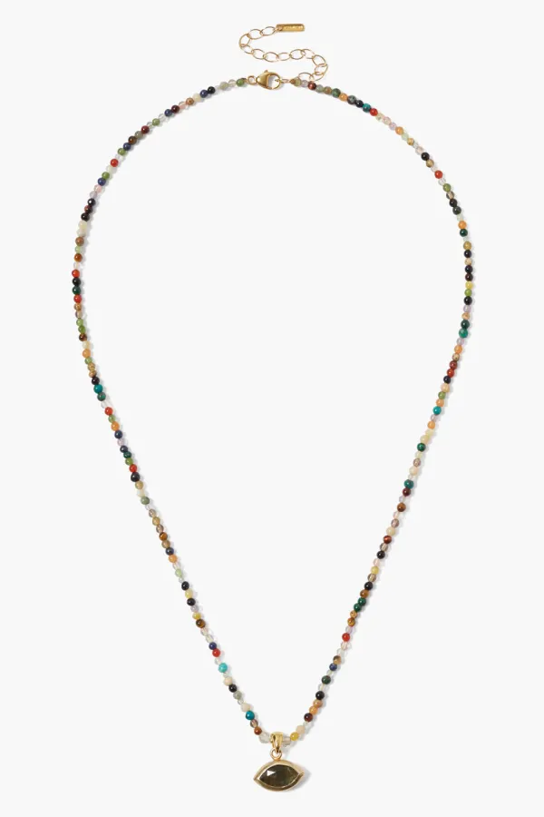 A Lively Addition To Our Evil Eye Collection! A Labradorite Evil Eye Marquise Pendant Hangs From A Colorful Gemstone Necklace. An Essential Design For Everyday.