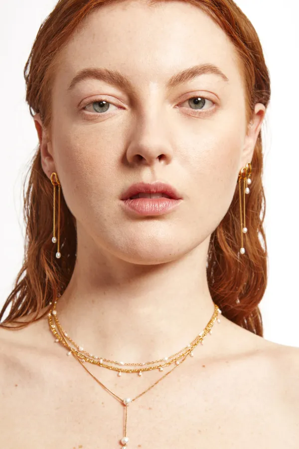 A Classic 18K Gold Plated Sterling Silver Chain Necklace Is Dotted With Delicate Freshwater Rice Pearls. A Simple Silhouette That’S Elegant On Its Own.