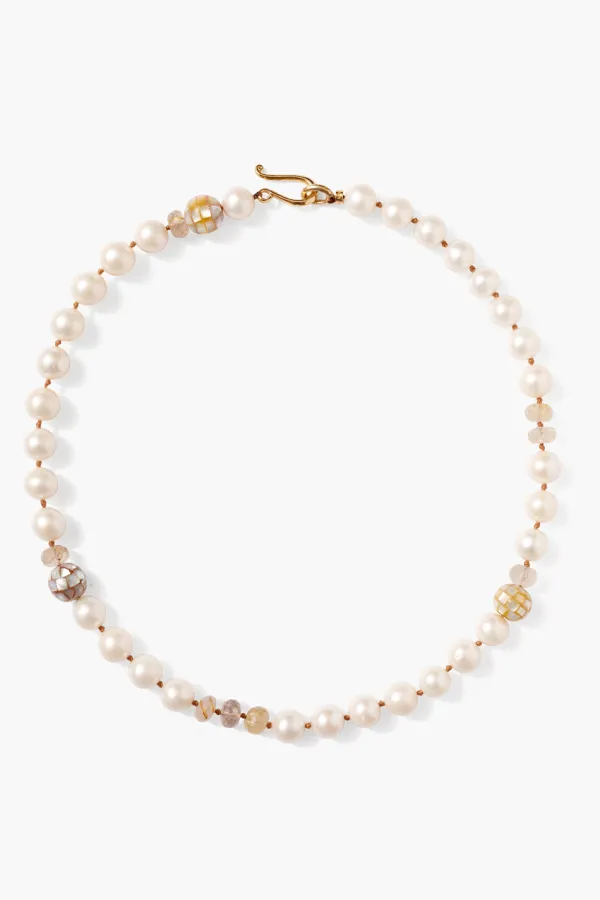 White Freshwater Pearls, Rutilated Quartz, And Mosaic Tiled Mother Of Pearl Rounds Are Knotted Together In An Intriguing Twist On A Classic Pearl Necklace. A Timeless Design Perfect For Dressing Up Or Styling Casually.