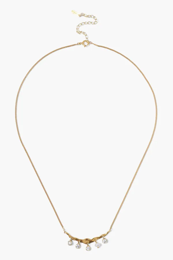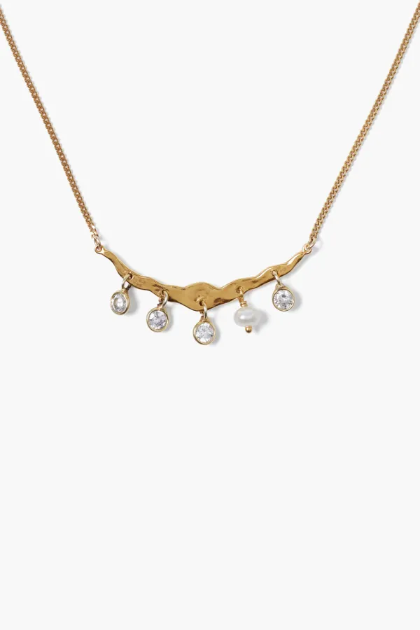 This 18K Gold Plated Necklace Features Our Signature Crescent Shape Dripping In Crystals And Freshwater Pearls. Pair With Our Crescent Hoop Earrings To Complete The Look.