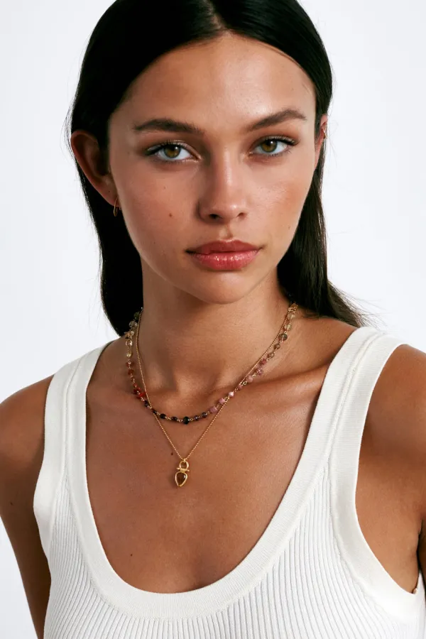 This Colorful Necklace Radiates Positive Energy. An Eclectic Mix Of Stones Including Garnet, Citrine, Quartz, And Rhodonite Rest At The Collarbone With This Short Necklace. Style On Its Own Or Pair With Longer Necklaces To Complete The Look.