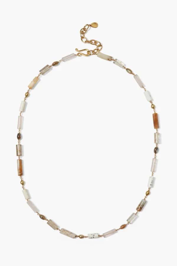 The Vibrant Beauty Of Gemstones Is Captured In This Bold Beaded Necklace. Soft Beads Of Rose Quartz, Abalone, Rutilated Quartz, Agate, Gold Rice Pearls, And White Magnesite Are Intricately Wire Wrapped Along An 18K Gold Plated Sterling Silver Chain. Layer With Shorter Necklaces To Complete The Look.