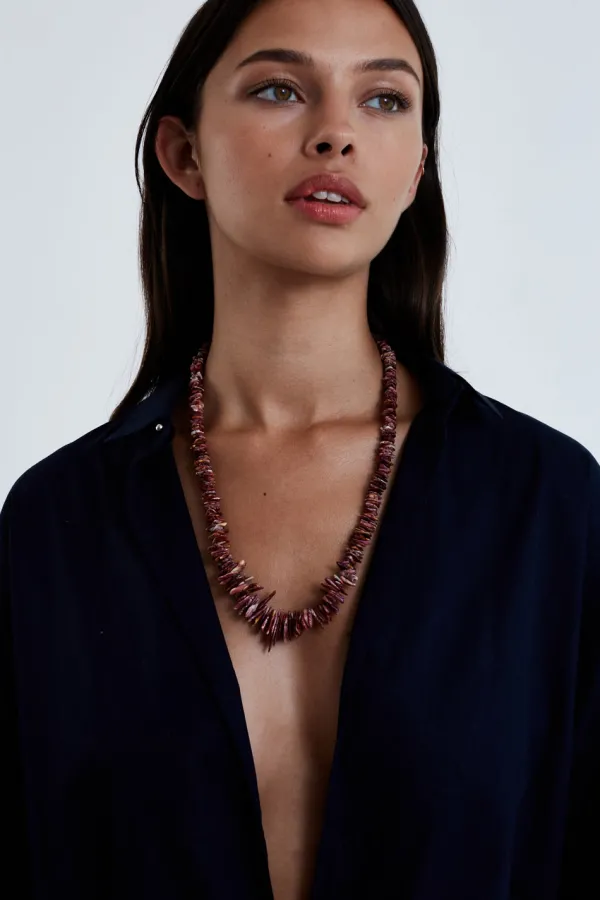 Inspired By The Grand Beauty Of Tropical Reefs. Graduated Purple Lion’S Paw Chips Taper To A Dramatic Point On This Statement Necklace.