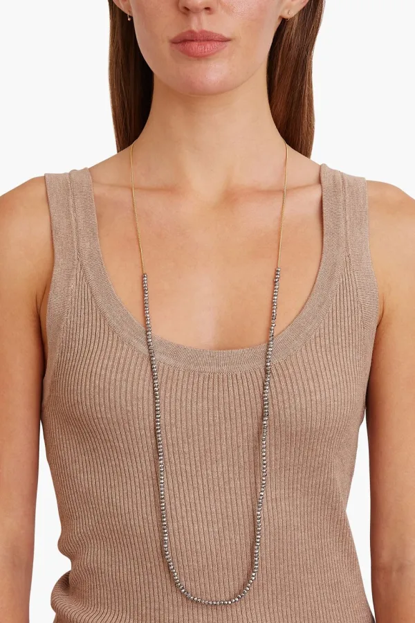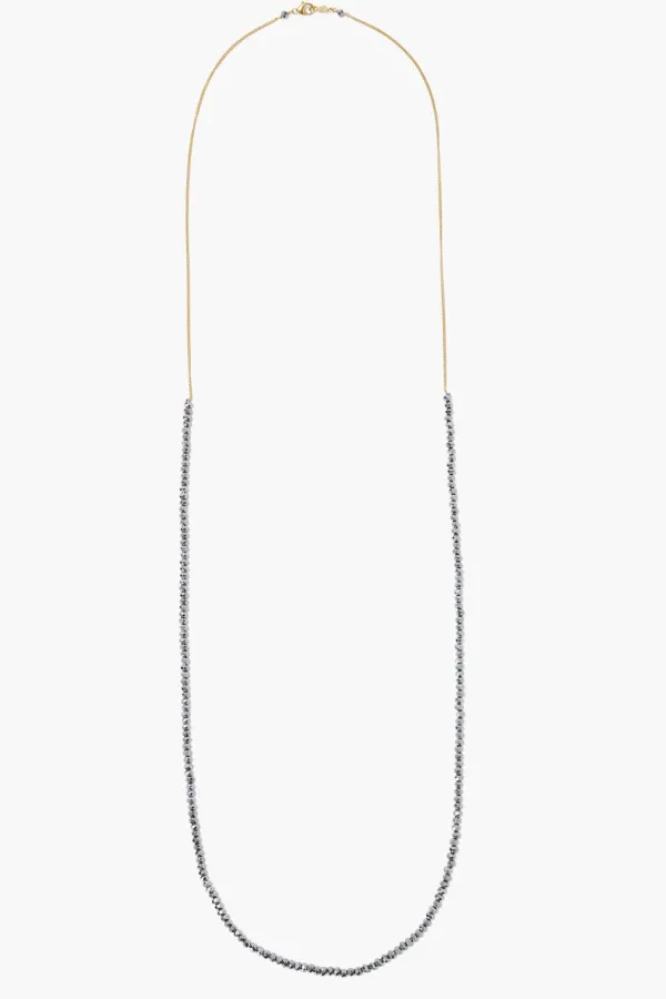 Long And Layerable, This Elegant Necklace Features Silver Iridescent Crystals On An 18K Gold Plated Sterling Silver Chain. Fastens With A Lobster Clasp.