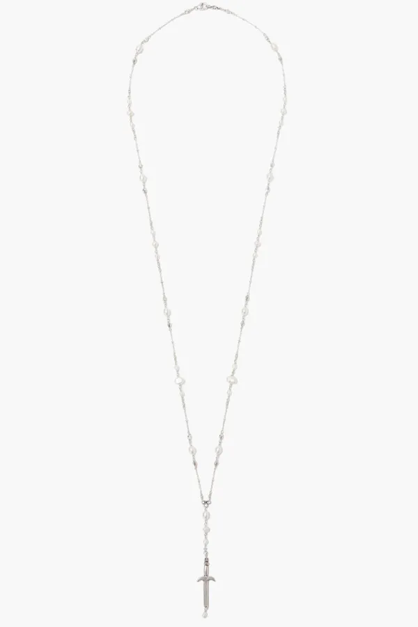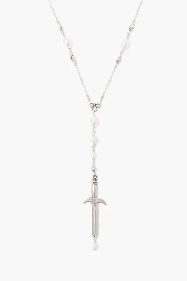 A Striking Juxtaposition Of Beauty And Strength, A Bold Dagger Talisman Suspends From A Chain Of Sterling Silver And White Pearls. Fastens With A Lobster Clasp Closure.