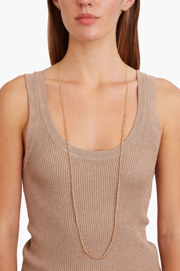 Long And Layerable, This Elegant Necklace Features Golden Iridescent Crystals On An 18K Gold Plated Sterling Silver Chain. Fastens With A Lobster Clasp.