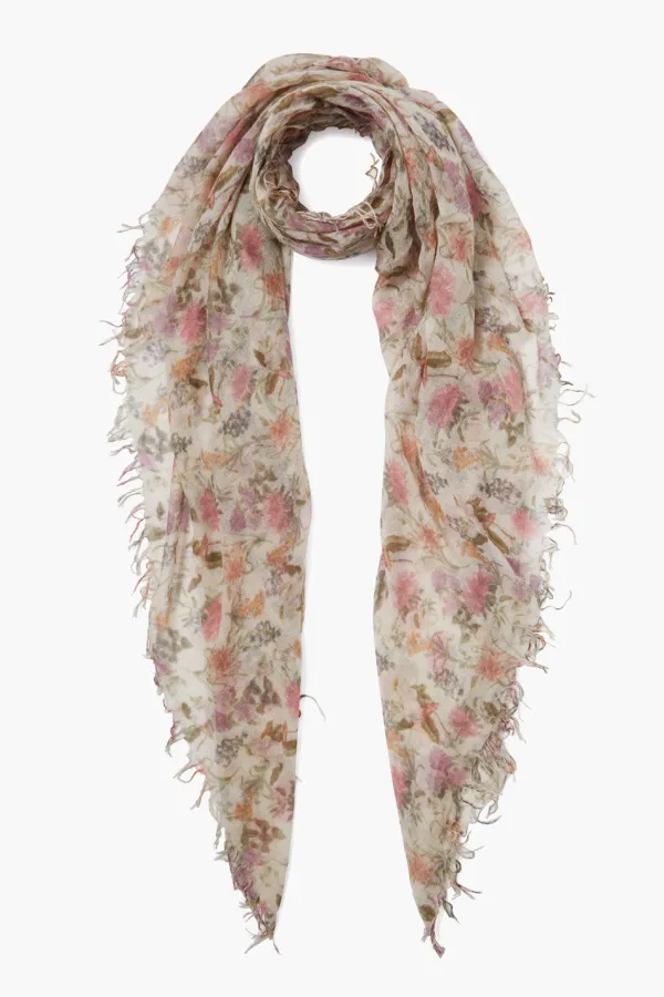 Our Signature Cashmere And Silk Blend Scarf In A Cream Hue With Pastel Vintage Floral Print. Super Soft And Lightweight With A Fringed Trim. This Scarf Is Perfect For Year-Round Wear.