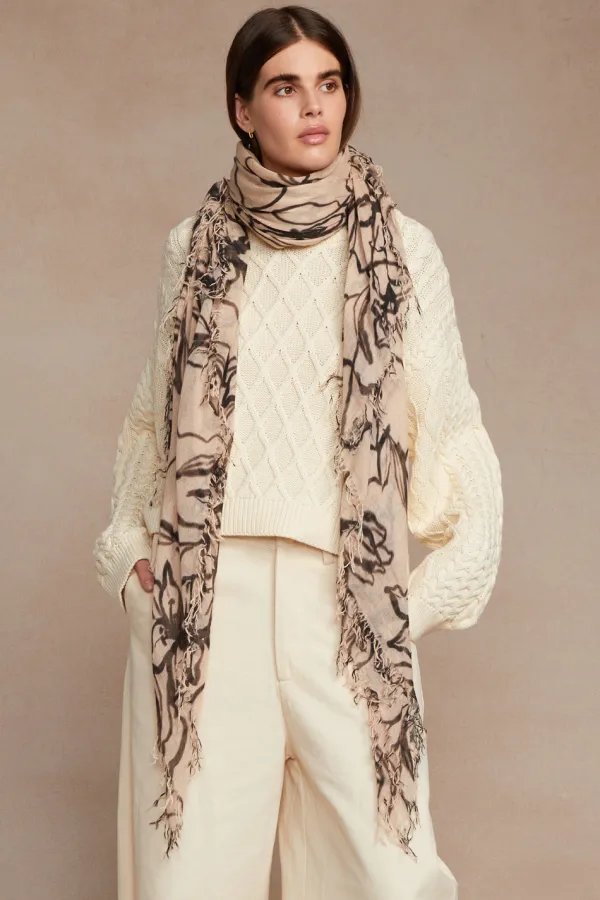 Made From Our Signature Blend Of Cashmere And Silk This Scarf Sports An Abstract Floral Brush Stroke Print. Super Soft And Lightweight With A Fringed Trim, It’S Perfect For Year-Round Wear.