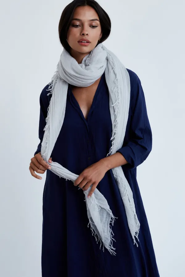 Our Signature Cashmere And Silk Blend Scarf In A Light Grey Hue. Super Soft And Lightweight With A Fringed Trim. This Scarf Is Perfect For Year-Round Wear.