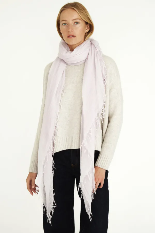 Made From Our Signature Blend Of Cashmere And Silk This Scarf Sports A Soft Lavender Hue. Super Soft And Lightweight With A Fringed Trim, It’S Perfect For Year-Round Wear.
