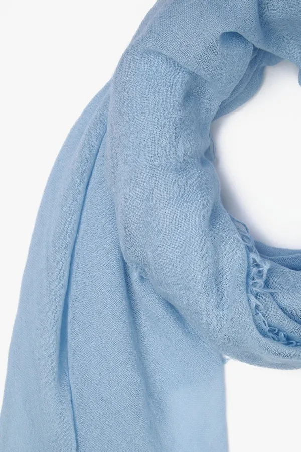 Our Cashmere And Silk Blend Line Come In Simply Blue Colorway. Fringe Trim Along The Edge. Super Soft And Lightweight, This Scarf Is Perfect For Year-Round Wear.