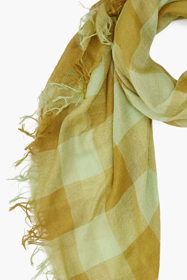Crafted From Our Signature Cashmere And Silk Blend, This Essential Scarf Features A Vibrant Tarragon Gingham Print With Decorative Fringe Trim Along The Edges. It’S Lightweight Yet Incredibly Warm, Perfect For Year-Round Wear.