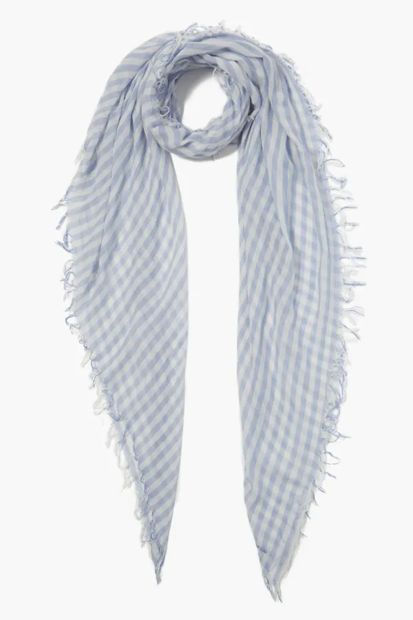 Made From Our Signature Blend Of Cashmere And Silk This Scarf Sports A Striped Print In A Soft Blue Hue. Super Soft And Lightweight With A Fringed Trim, It’S Perfect For Year-Round Wear.