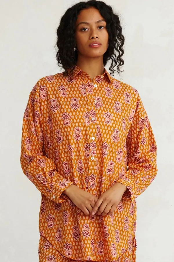This 100% Cotton Floral Block Print Blouse Is The Perfect Piece For Lounging In Style. Pair With The Alice Floral Pant To Complete The Look.