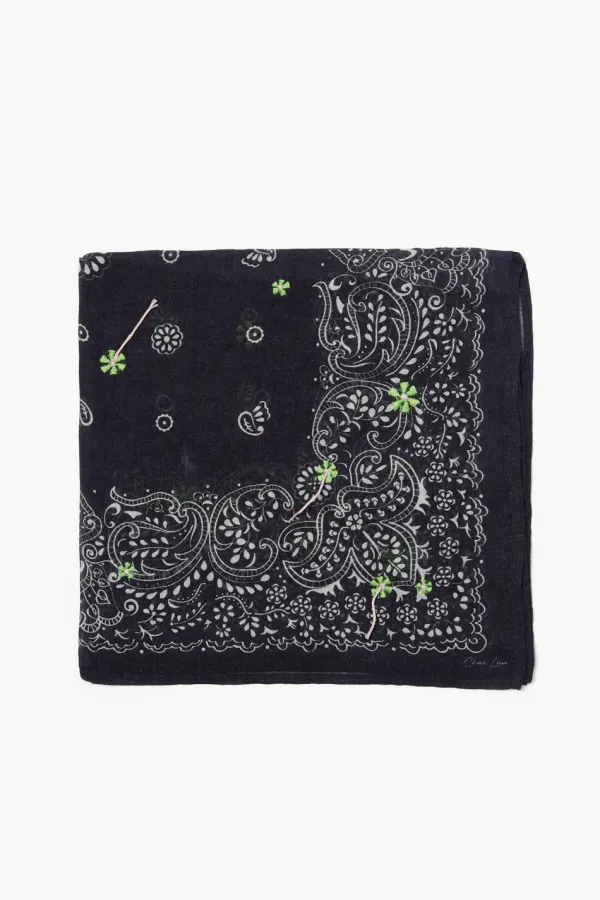 Made From 100% Viscose This Bandana Features Embroidered Flowers With A Loose Thread Detail And Paisley Print. Light And Breathable, It’S Perfect Tied Around Your Neck Or As A Head Scarf.