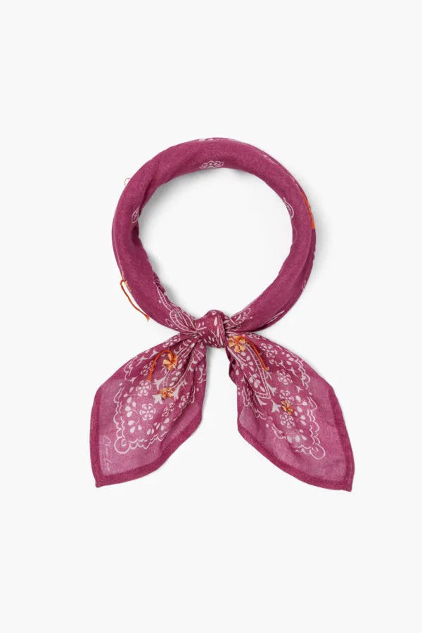 Made From 100% Viscose This Bandana Features Embroidered Flowers With A Loose Thread Detail And Paisley Print. Light And Breathable, It’S Perfect Tied Around Your Neck Or As A Head Scarf.