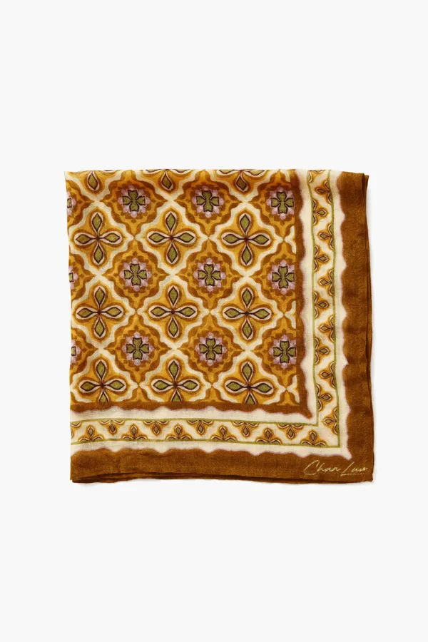 Printed Lightweight Viscose Gauze Bandana In Mineral Yellow Hues. Wear Around Your Neck, As A Headscarf, Or Tie To A Bag Handle For A Playful Accent.
