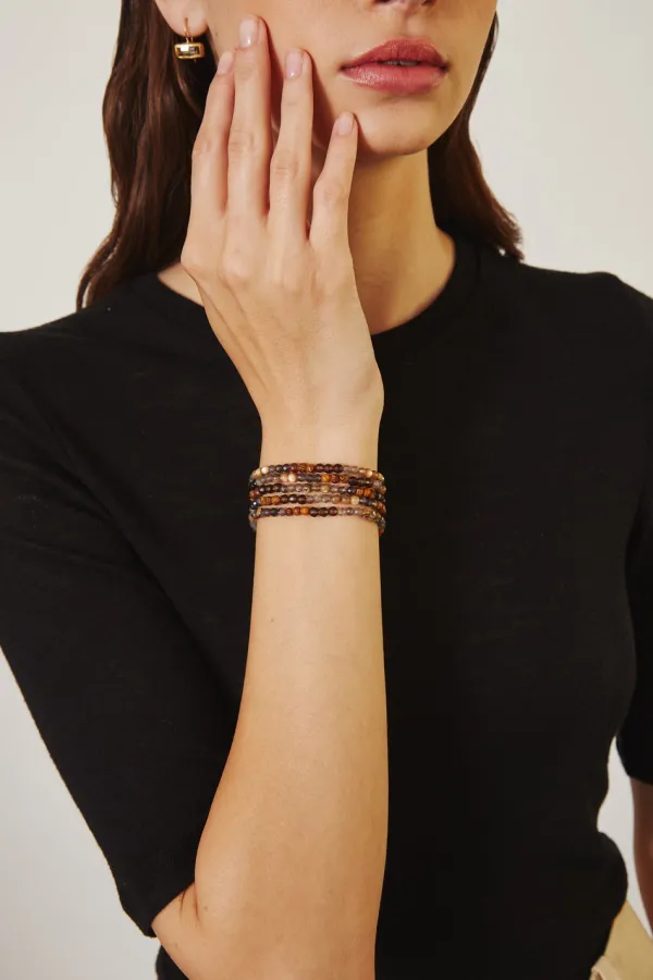 A Mix Of Smooth And Faceted Abalone, Grey Labradorite, Smoky Quartz, Elephant Skin Jasper, And Iolite Beads Create A Step Pattern In This Intriguing Naked Wrap Bracelet.