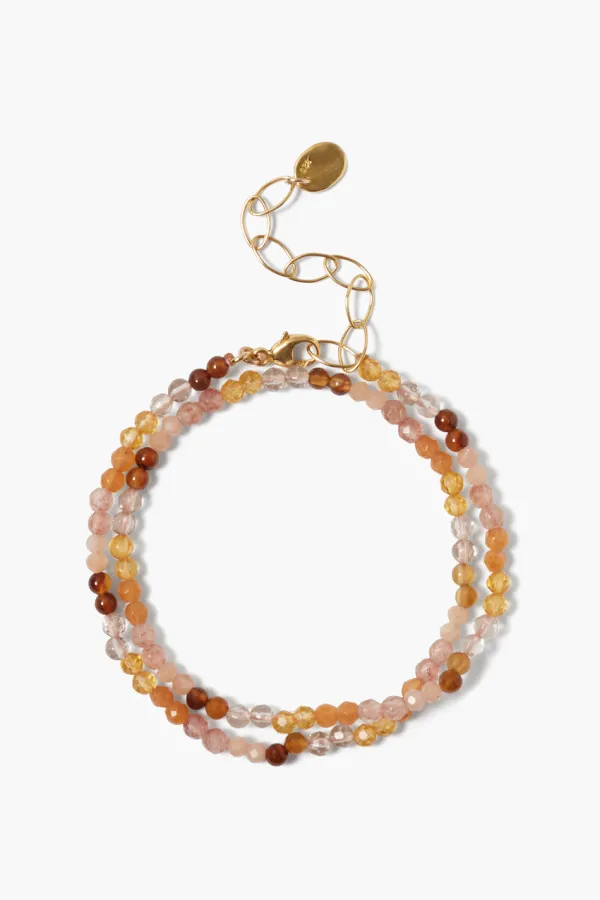 Fiery Shades Of Red And Orange Decorate This Anklet Featuring Brown Jade, Light Smoky Quartz, Mystic Citrine, Red Aventurine, Strawberry Quartz, And Sunstone Finished On An 18K Gold Plated Chain. An Ideal Silhouette For Layering.