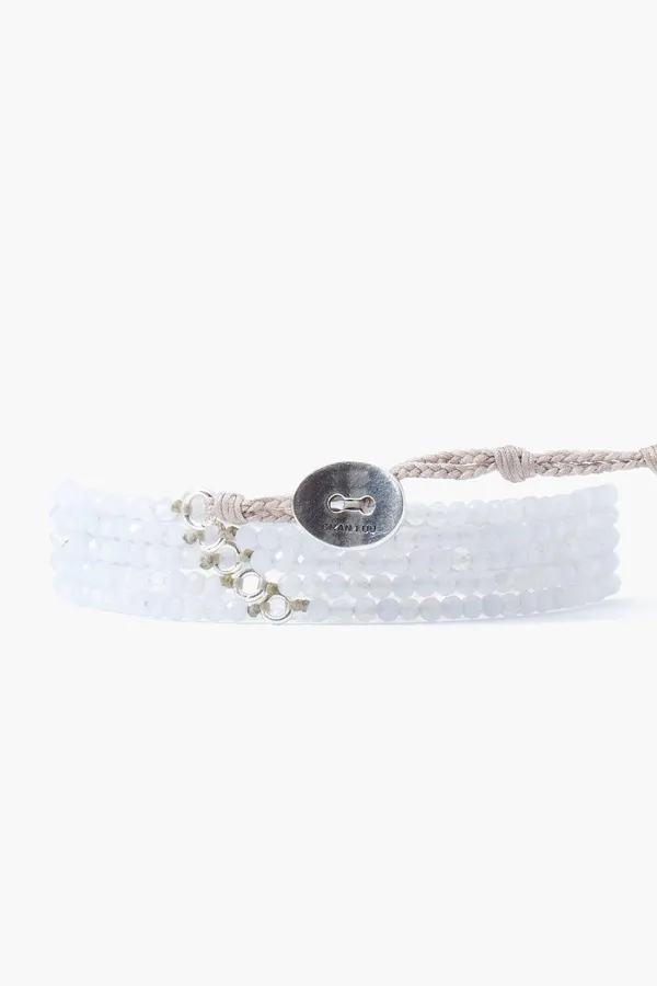 Naked Five Wrap Bracelet Featuring Blue Lace Agate Faceted Rounds Woven On Nylon Cord. Fastens With A Petite Oval Chan Luu Button.