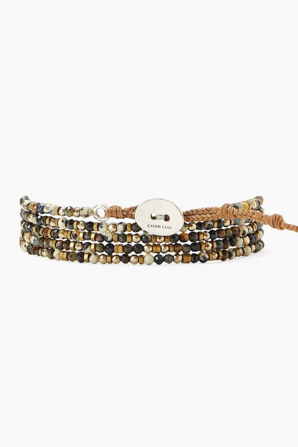 This Five-Layer Naked Wrap Bracelet Adds A Bit Of Bohemian Luxury To Any Look. Features An Earthy Mix Of Blue Tiger’S Eye, Dalmatian Jasper, Titanium Pyrite And Hematine. Fastens With An Adjustable Sterling Silver Signature Oval Button.