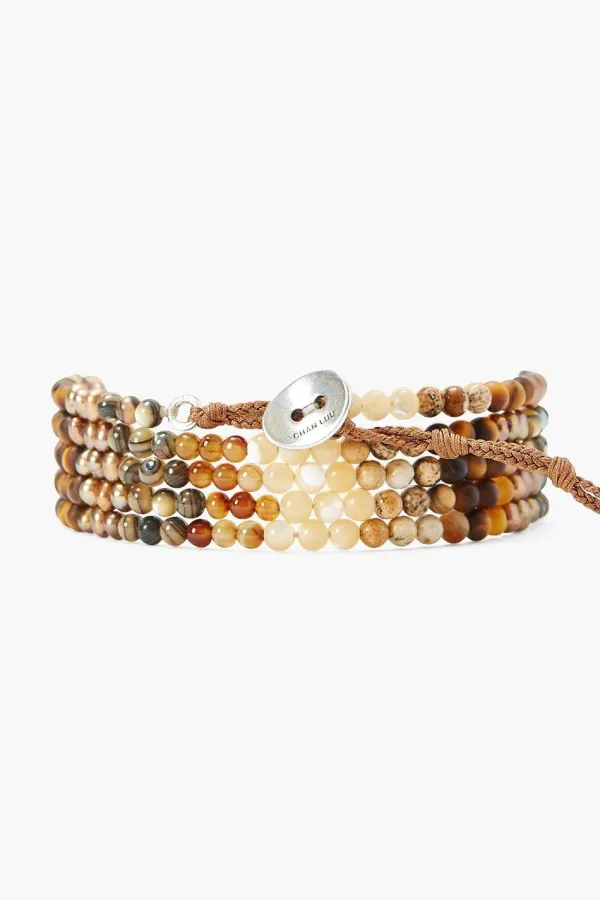 This Five-Layer Wrap Bracelet Adds A Bit Of Bohemian Luxury To Any Look. Features An Earthy Mix Of Mother Of Pearl, Picture Jasper, Tiger’S Eye, Bronze Pearl And Brown Jade. Fastens With A Sterling Silver Signature Oval Button.